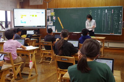 5月26日(木)、熊本県教育委員会広報誌「ばとん・ぱす」の取材がありました。全学年を参観され、タブレット端末を使った授業と活動の様子が広報誌で紹介される予定です。