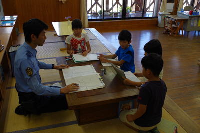 社会科の「事件や事故からくらしを守る」の学習と、国語科の「新聞をつくろう」の学習を関連付けて、地域の駐在所の甲斐さんをゲストティーチャーとしてお招きして、様々な疑問をインタビューしました。