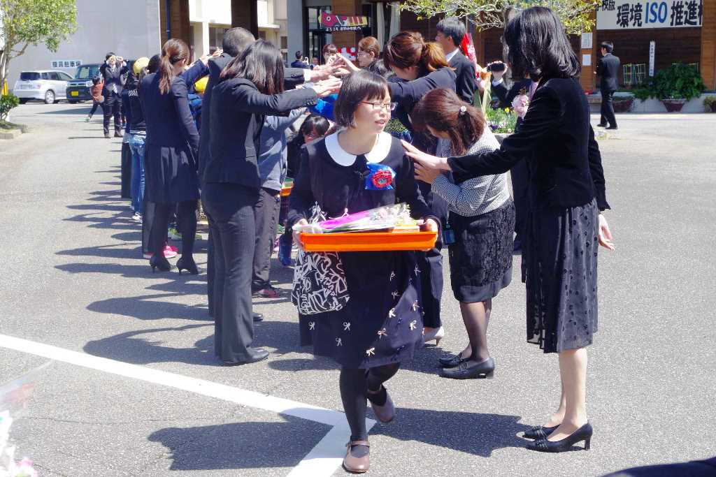 太陽の光が満開の桜を照らす中、14人の卒業生が、多くのご来賓の方や保護者の方に見守られ、学び舎を巣立っていきました。