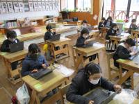 子供たちは、一人1台のタブレット端末を上手に活用し、授業を行っていました。