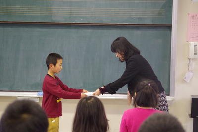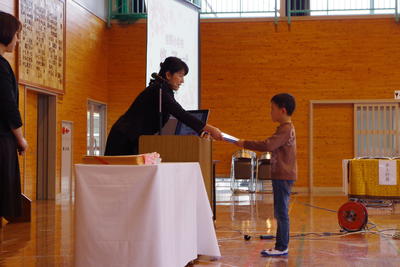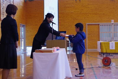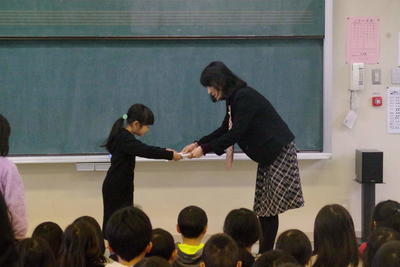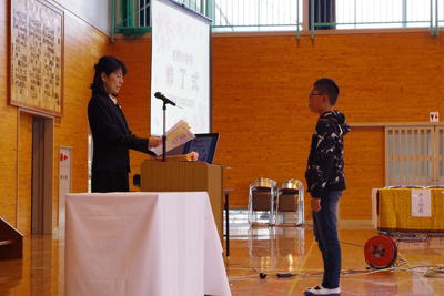3月22日(金)、1年生から5年生の修了式が行われました。まずはじめに、修了証の授与、校長先生からのお話がありました。