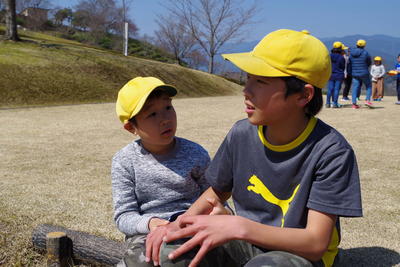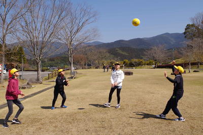 色とりどりのお弁当や、おやつを食べた後は、自由行動の時間を過ごしました。サッカーやバレー、ドッジボールや草スキー、在校生は、様々な遊びを通して6年生とふれ合うことができました。