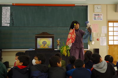 毎週読み聞かせにきていただいている永石さん手作りの紙芝居による読み聞かせでした。