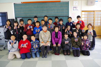 岩野地区在住の東さん、西さんに卒業生へコサージュを贈呈していただきました。たいへんきらびやかで、すてきなコサージュです。卒業生の門出に華をそえていただきます。