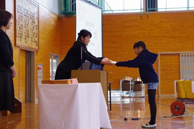 今回は、各部活動や工作展、作文などの表彰がありました。