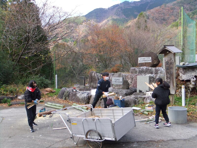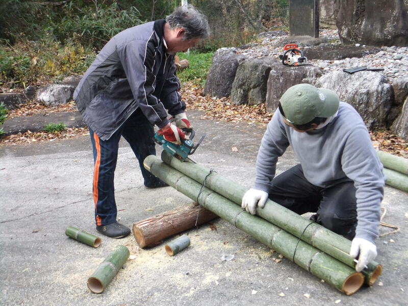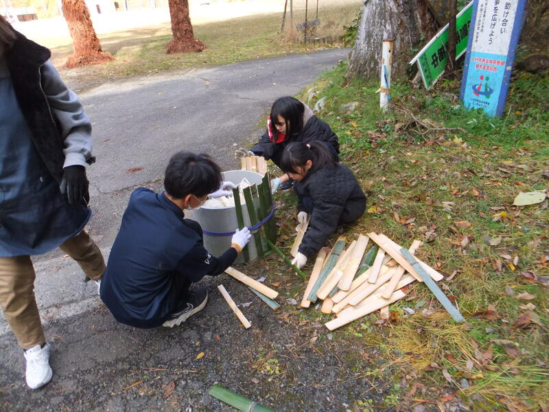 12月4日(木)の学習発表会、持久走大会を終えて、新しい年を迎えるべく、門松づくりを行いました、保護者の方々と地域学校コーディネーターの先生、そして地域の方に協力いただき作成を行いました。材料はすべて、樅木地区から調達してきました。竹や藁縄、葉ボタンなどバランスよく組み合わせて、見事な門松ができあがりました。本校も、新年を迎える準備が整いました。