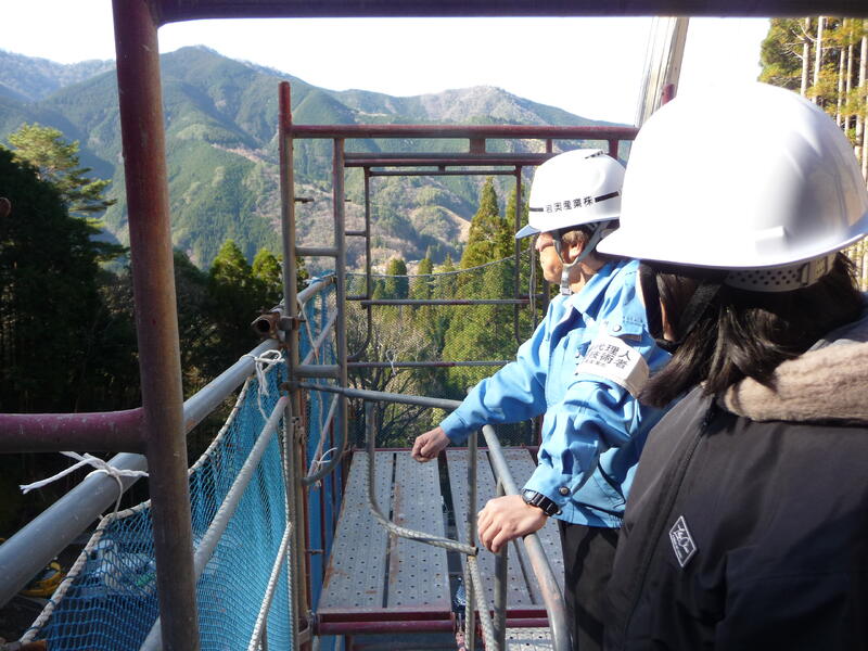 普段私たちが入ることのできないダムの仲間で見学をさせていただき、大変貴重な経験をさせていただきました。見学後は、本校の運動場にて、建設現場で使用されているドローンを実際に操縦する体験もさせていただきました。どれもも貴重な体験ばかりでした。