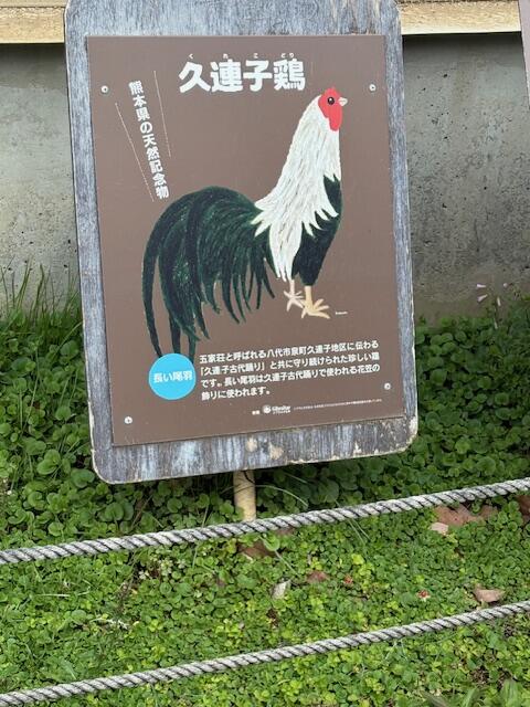 動植物園では、八代市泉町久連子地区に昔から伝わる「久連子古代踊り」とともに守り続けられた久連子鶏が園内に飼育されていました。この久連子鶏について、熊本市動植物園の松本園長様から、特別に解説をしていただく機会にも恵まれました。松本園長様、ありがとうございました。