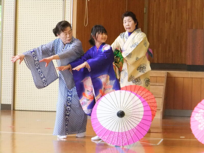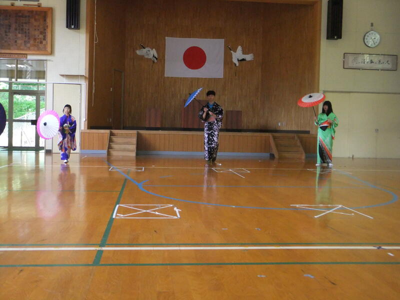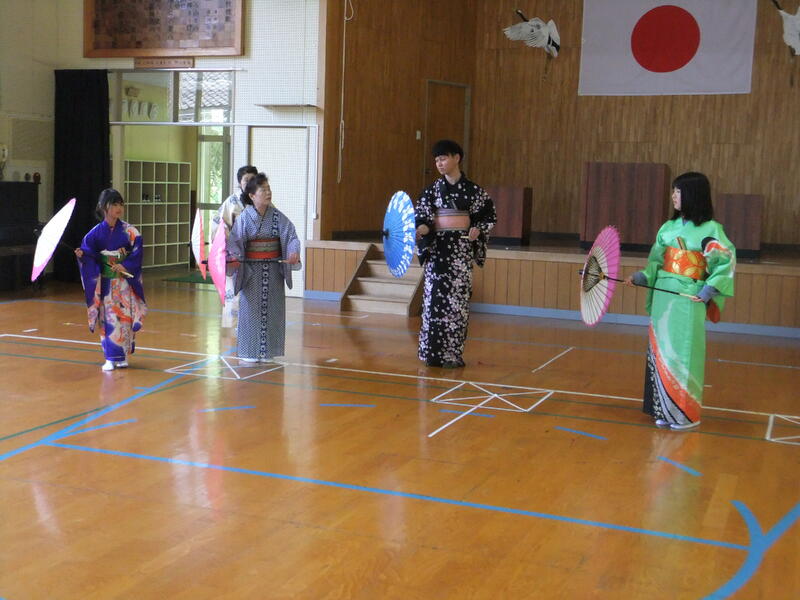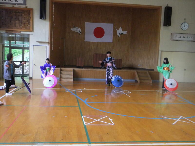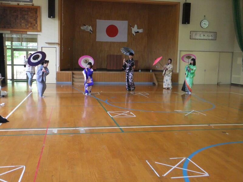 体育の時間の表現に学習で、日本舞踊に挑戦しました。講師の方は、本校育英会の会員でもある、岩崎洋子様、結城栄子様にお世話になりました。岩崎様は、日本舞踊の名取の資格も持っておられ地域の方々へ日本舞踊の指導をされています。練習の様子があまりにも本格的でとても驚きました。本校の子供たちはもちろん担任の先生もとても熱心に頑張っていました。