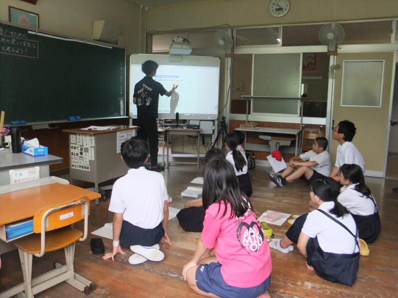 7月11日(金)の1時間目に、八竜小学校の4年生とオンラインで交流をしました。八竜小学校の4年生の担任の先生と、校長先生、4年生の女の子2名と交流しました。