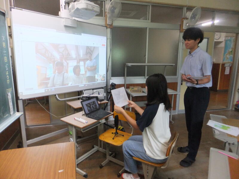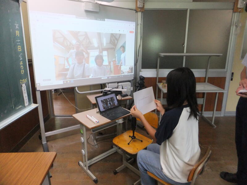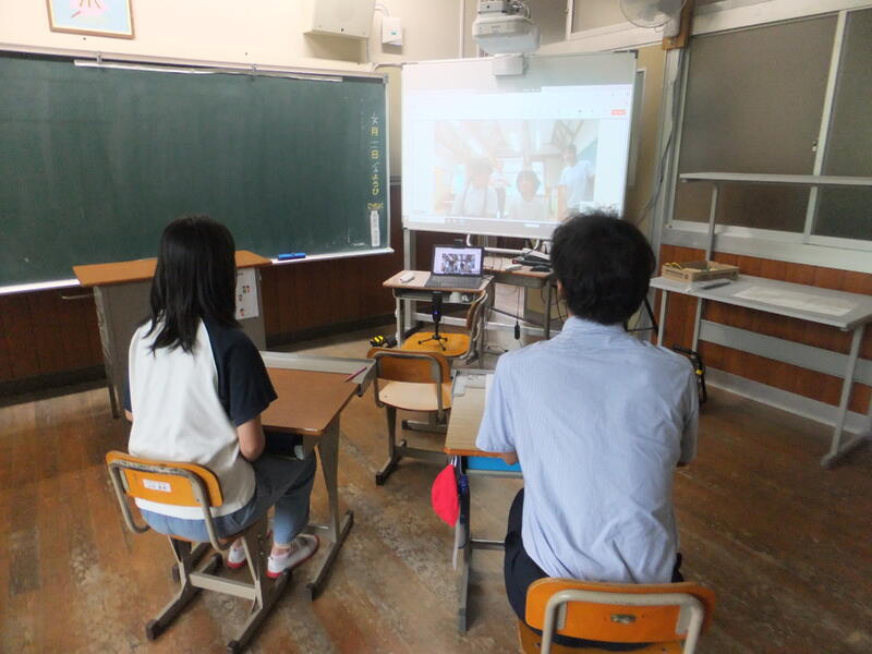 互いに自己紹介と互いの学校の簡単な紹介をしました。これからも、機会をとられて、学習での学びの交流や、発表会、意見交流会などオンラインを活用した取組を充実させていきたいと思います。