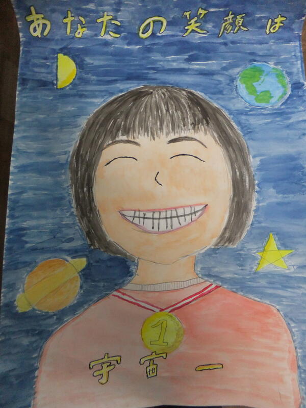 6年生の児童が、作成していた人権ポスターが完成したと、校長室へ見せに来ました。自分なりに人権に対する思いをしっかりもち、その気持ちが伝わるように、構成や文字を考えて作成していました。校長室に見せに来た後、事務の先生や給食の先生にもみせて、自分がポスターに込めた思いを説明していました。人を大切に思う、6年生の気持ちに、とても感動しました。