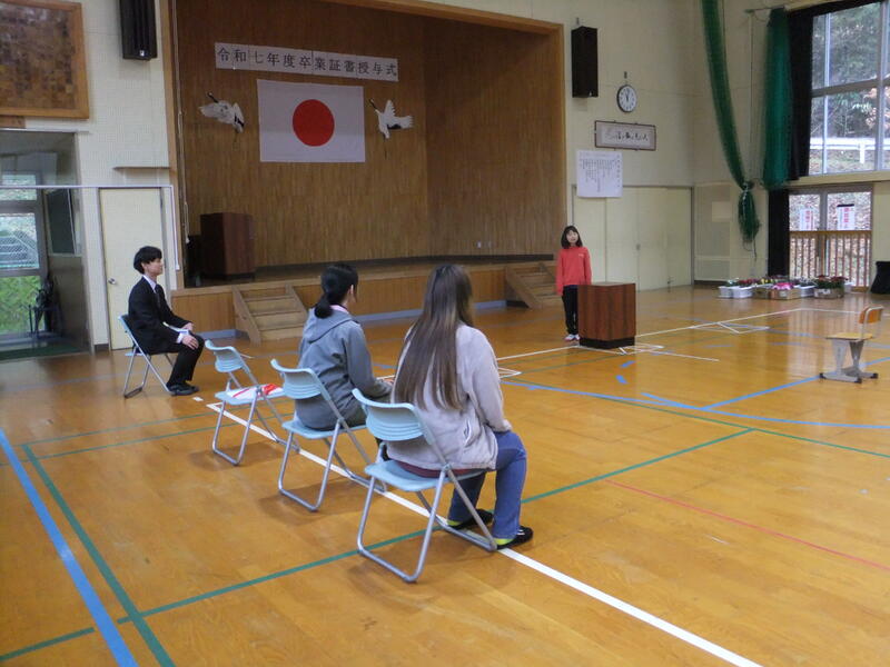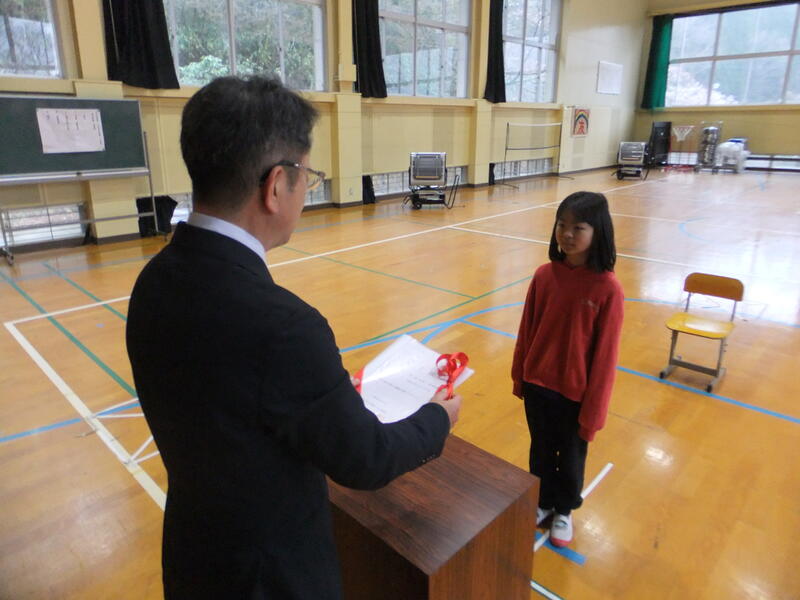 3月25日(水)に唯一の在校生である第4学年の修了式を行いました。先日の卒業式でも、在校生代表として、とても立派な態度で、卒業式に参列しました。卒業生への感謝の気持ちを言葉と歌で表現し、卒業を祝うとともに中学校生活へのエールをしっかり送りました。その、健気に頑張る姿を参列していただいた方々もとても感心しておられました。