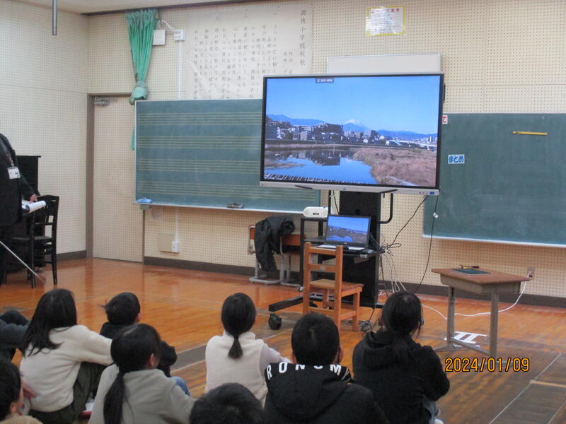 最後に、年末に日野潤徳小から山都町に寄ってくれた1年生の話をしました。本校正門前や通潤橋前で写った記念写真が送られてきましたので紹介しました(ここでは掲載は控えておきます)。12/29に山都町にこられたそうで、残念ながら学校は閉庁で職員がおらず、校内の案内をすることができませんでした。わざわざ熊本に来ていただき、ありがとうございました!!