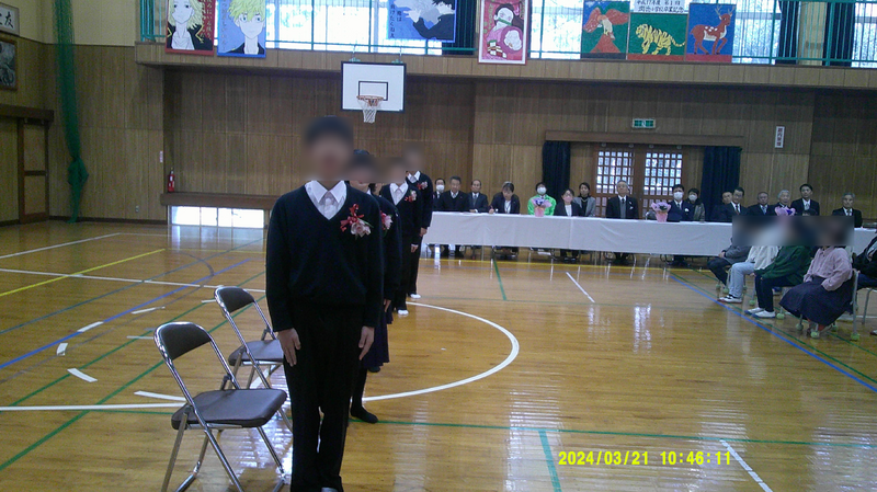 本日の式中にどうしても言いたかったことがありました。それは、「潤徳小学校の存在」です。今年から3年間は潤徳小出身の卒業生には、卒業した小学校が(閉校してしまって)「ない」状態です。その寂しい思いというのは大きいものだと察します。だからこそ忘れてほしくない!卒業生にも地域の方々にも・・・。そんな思いから、「どうしても式中に『潤徳小』の3文字を出したい!」と考えました。