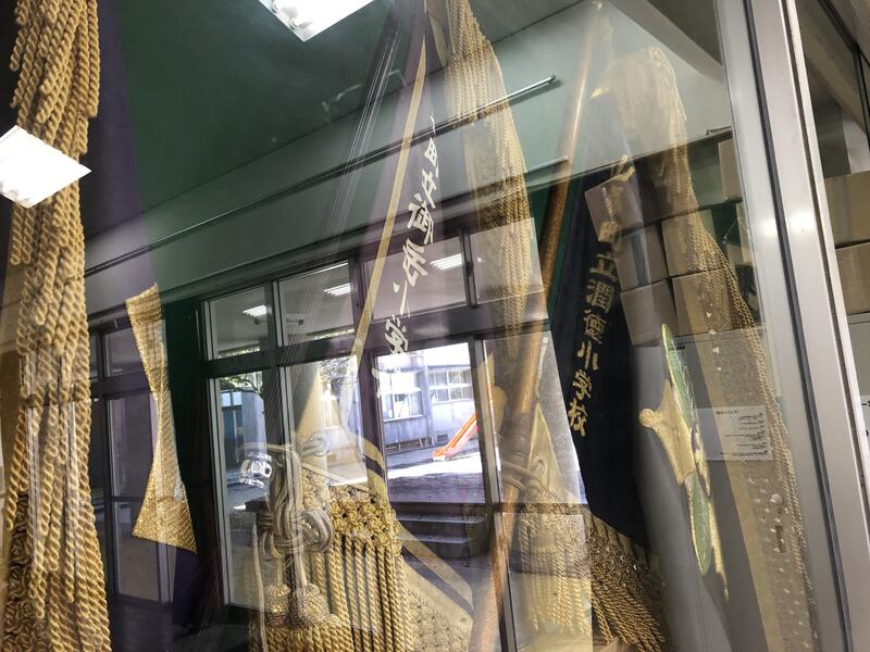 私は1つ気になる事がありました。しかし、斉藤校長は察してちゃんと証拠を見せていただきました。校長室近くの廊下に「友情の旗」はしっかり掲示してありました!