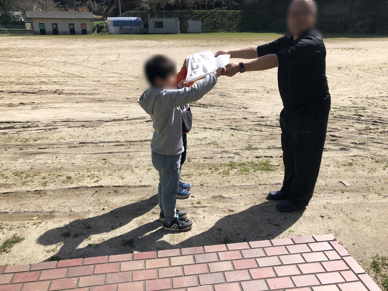 卒業記念品授与 潤徳小出身の子が卒業生代表で行いました!