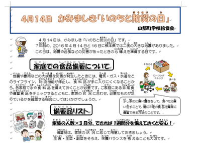 明日は、上益城「命と防災の日」にちなんで防災メニューが登場します。