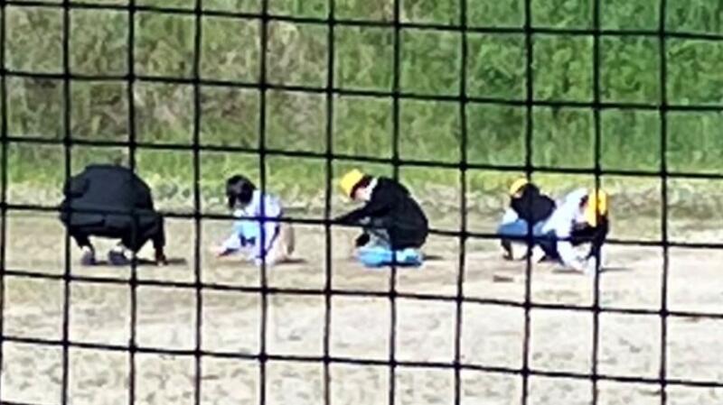 職員室からの撮影ですので、ネットが映っていることをご了承ください。よく見ると、いつものメンバーはUさん1人。あとの2人は、田中教頭先生、あと1人はどうみても6年生、いつものメンバーではないようです。