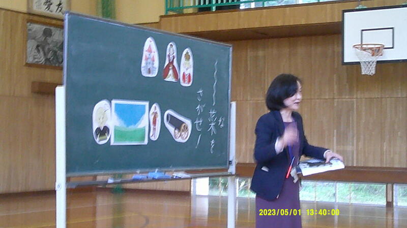 1年生に「ひらがなは全部覚えましたか?」の問いかけからはじまりました。実は、これが後話の伏線となっていました。