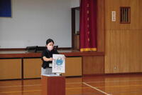 あいさつのあと、児童1人ひとりにアニータ先生手作りのプレゼントが渡されました。