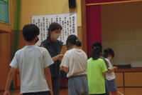少人数でマスクも着用しています。1学期の締めくくりということで、