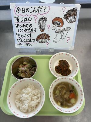 今日は、きのこ汁でした。何種類ものきのこが入っていました。みんな何種類気づいたかな?