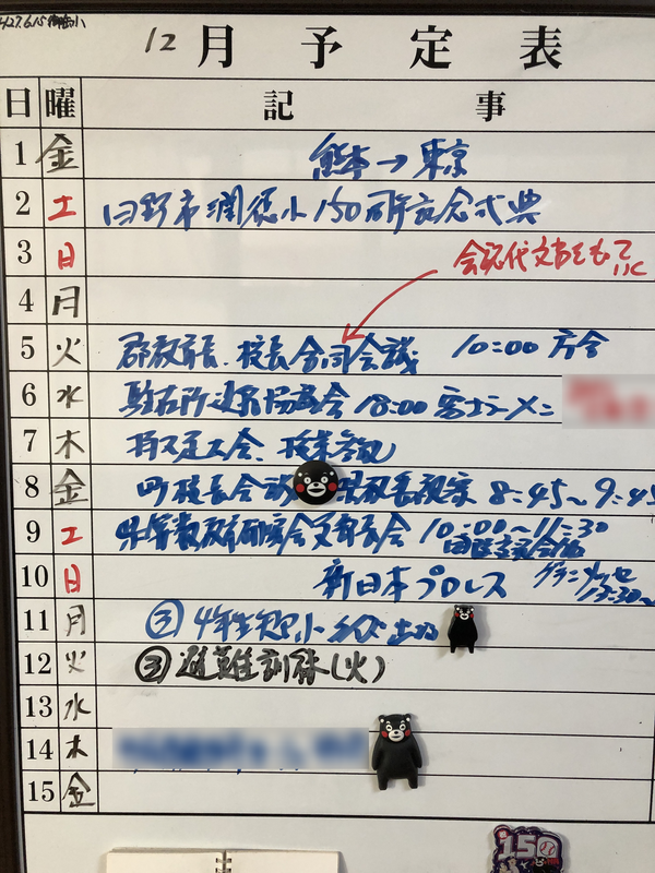 校長室に記入していたスケジュールを見られた指導主事が言われました。「校長室のスケジュールにプロレスと書かれているのを見たのは初めてです」確かに私くらいでしょうね・・・苦笑。その後、少しプロレスの話題で盛り上がりました。「以前勤務していた学校ではプロレスを学校で見ましたよ」などなど・・・。いよいよ明後日です!