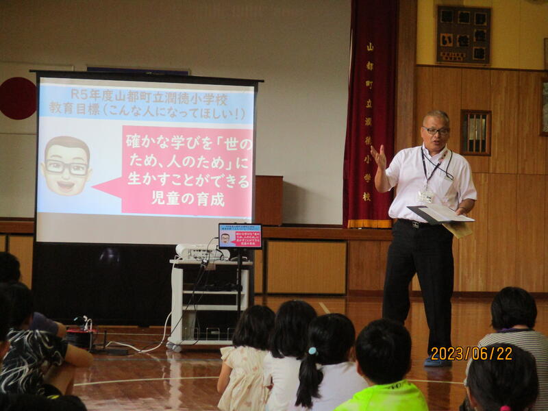 続いて校長からの話。今年もやります!「世のため・人のため活動」1年生は初めてですので少し説明しました。