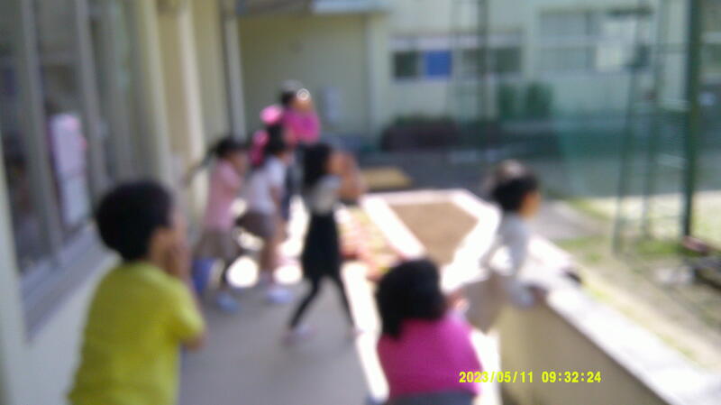 みんなでベランダに出て大声で叫び出しました。もちろん授業中です。潤徳小学校だからできることかもしれません笑。でも、この決定的瞬間をピンボケでしか撮影できなかった才能ナシの校長でした。※これは加工ではありません。単なるピンボケです・・・(T-T)
