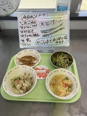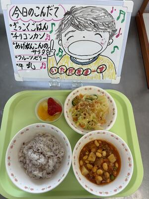 雑穀ごはんを見た一年生は「せきはん だーーーー!!」と喜んでいました。