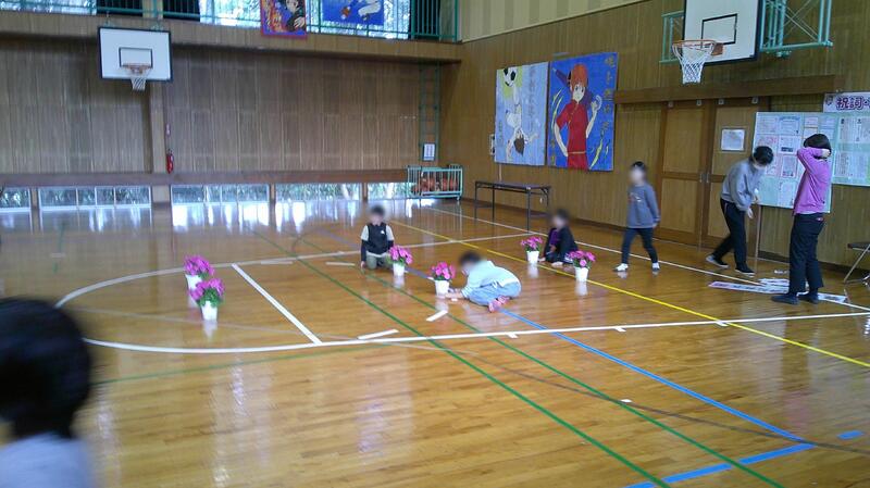2年生、卒業生の「花道」の間隔の調整をしています。「汗かいた~」とテキパキとした仕事ぶりを見せていました。