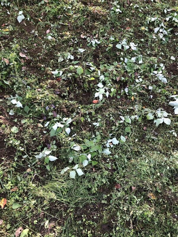 恒例の昼休みウォーキング後に、運動場南側を見に行きました。さらに新しい穴ができています。