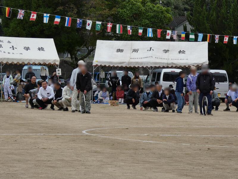 本校の特徴で、親子競技で中高生の兄姉が出場する家庭が多いです。忙しい親の代わりに弟妹の面倒をみる昔の家族の暮らしを思い出します。本校の場合は親も出て、兄姉も出るのです。潤徳小らしい、ほのぼのとした光景です。