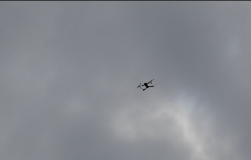 ドローンが飛んでいる様子。さて、どんな写真が撮れたのか?お楽しみに・・・