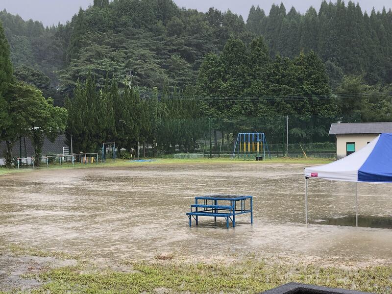 こんなに運動場の姿って変わるものか!・・・今更ながら感じています。ただ、ポジティブに考えれば「今日は少し休みなさい。いつもより涼しい中で練習できるよ」ということなのかもしれません。