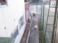 山の斜面には陽があたり、林の隙間から太陽光がのぞく・・・運動場にほとんど陽があたっていないのが写真からおわかりだと思います。山都町の冬は寒い!しかし、歩いた後は体がポカポカになりました。「早く子どもたちが登校してこないかな~」と児童の登校を心待ちにしています。