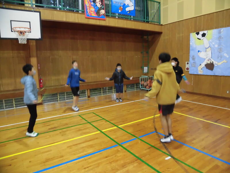 今月の20日に短縄大会、27日に長縄大会(8の字)を予定しています。今週は、その大会に向けて、さらに基礎体力向上をはかるべく、朝から短時間ですが体育館で練習をします。今日はその第1日目でした。