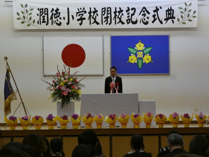 子どもたちに向けて「今回の閉校は寂しいことかもしれませんが、閉校を新しいスタートととらえ、自信を持って一歩を踏み出してください」とエールを送って頂きました。