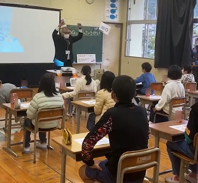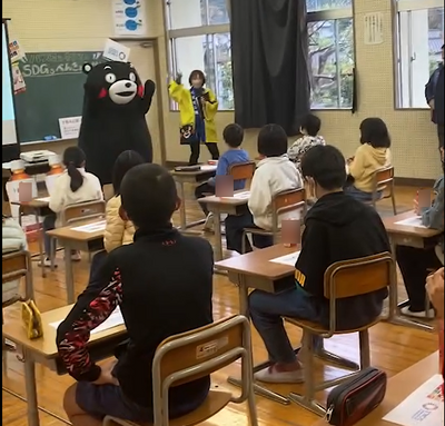 【全校】SDGs出前授業を行いました。何とくまモンが潤徳小に来てくれました~!!!!