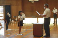 今年度初めての表彰です。5年生のUさんが代表で賞状を受け取りました。その後ろに立つ3年生のSさん。この2人は、このあと学級代表の作文発表にも登場するのですが、この2人の発表を聞く姿勢がとても素晴らしかったのです。