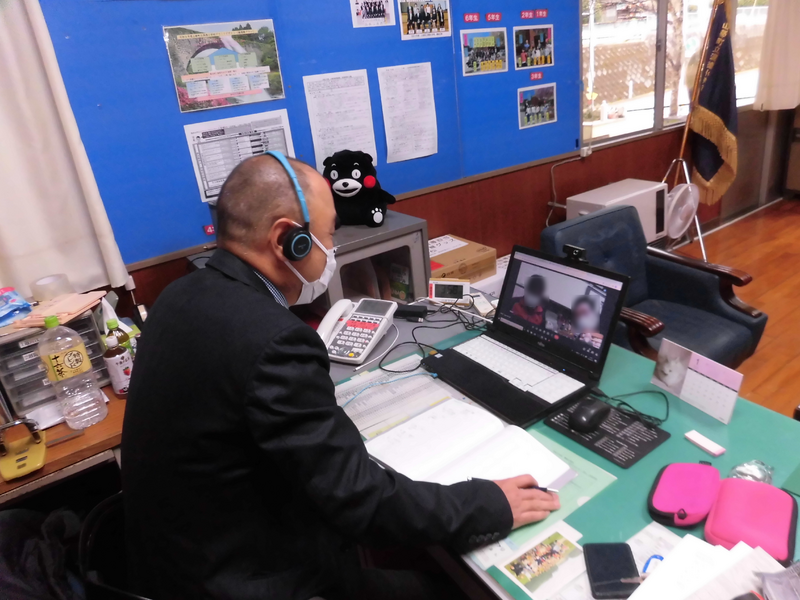 今回は、スキマ時間にスムーズに実施するために、校長室のPCを使っての会談でした。国語の授業の話が出てきて「あー今日やりましたよ!」「山都町の方言はですね・・・」と具体的な話になり、わずかな時間に都県を越えた学校同士での価値ある教材研究もできていたようで、「やっぱり(コラボは)十分やる価値がある!」と確信しました。