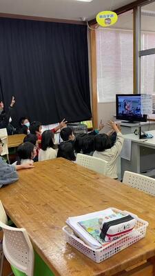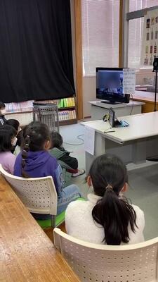 【全校】(日野)潤徳小4年生都内見学のライブ中継を全校児童で視聴しました