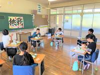 3・4年生は算数の授業。複式学級指導の実際を見ていただきました。参観者の中には、3月に卒業した子の姿もありました(実は、写真の中にいます)ので、少し話をしました。この日は、中学校授業参観の振替休業日だったそうです。