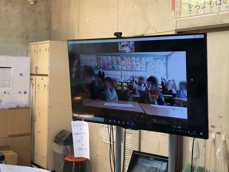先日のHP そのときのブログはコチラ!! でも紹介していましたが、写真撮影のあとに日野潤徳小の集会委員の子たちがやってきて、12/21の朝に予定している集会コラボについての案内(PR)をしたいということで、メッセージを動画で撮影したものを流しました。ただ、音声が入っていなかったので私の方から「こんなことを話していたよ」と大体の内容を伝えました。近日中に子どもたち同士の打ち合わせをしますので、詳しいことはその時に。