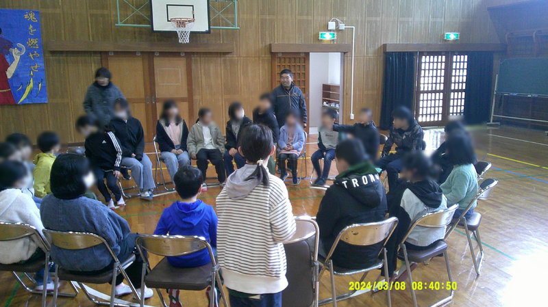 やはり、ほとんどの子が6年生を指名しました。「・・・してくれてありがとう」「・・・を教えてくれてありがとう」という内容でした。ただ、これも恒例になっているのですが、あえて弟が自身の兄を指名して伝える光景も見られます。こういうのもまたおもしろいものです。