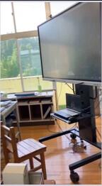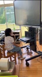 (写真↑)子どもたちが近くの人と意見交換している様子(写真↑)反射して見づらいですがモニターには私の姿が写っています。