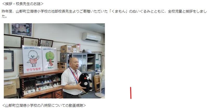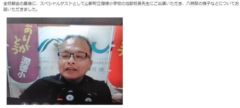 今回は、日野潤徳小・山都潤徳小との3元ライブ配信や昨年度を大きく上回る旅行中のHP更新作業をやりとげた自分自身をホメてあげたいと思います。 PS(日野)潤徳小でも多少反響があったようで良かったです。ライブ配信中の(日野)側の様子はコチラ!!