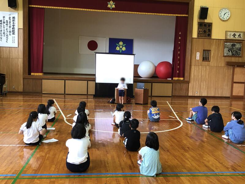 児童会各委員会から連絡と報告がありました。今回特筆すべきは、発表者に3年生が登場したことです。これまでは、高学年の6年・4年生が中心の発表でしたが、今回は4年生・3年生だけで発表しました。ナカナカよい経験です!