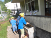 今日は2名の新人さんが登場。様子を写真に撮ろうかと思い、私が手洗いに行くと、子どもたちも「もう終わりかな」と思ったのでしょう。手洗いを始めてしまい、この写真になってしまいました・・・(笑)
